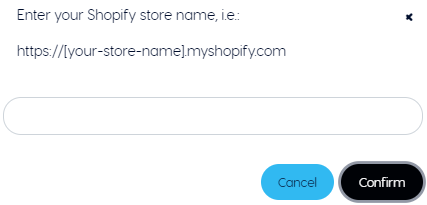 Step 2) Press the 'Add Integration' button and enter your Shopify store name or URL, e.g. yourstore or yourstore.myshopify.com.