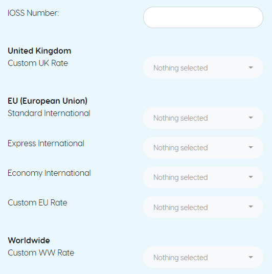 IOSS Number will be required for some routes, add the IOSS number associated with your Shopify store within the settings page.
