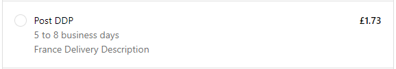 Within the settings page, you will also be able to define the estimated delivery time and description for each delivery route, which will alter how the route appears on checkout: