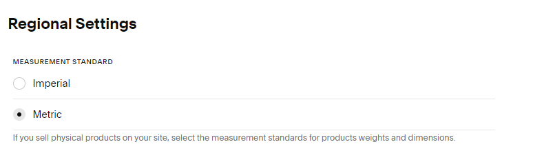 Step 7) Please ensure your shipment settings in Squarespace is set to metric measurements as all Nexae shipments are processed in Kg. To do this go to Settings > Language & Region > Regional Settings. From here, select metric and select 'Save'