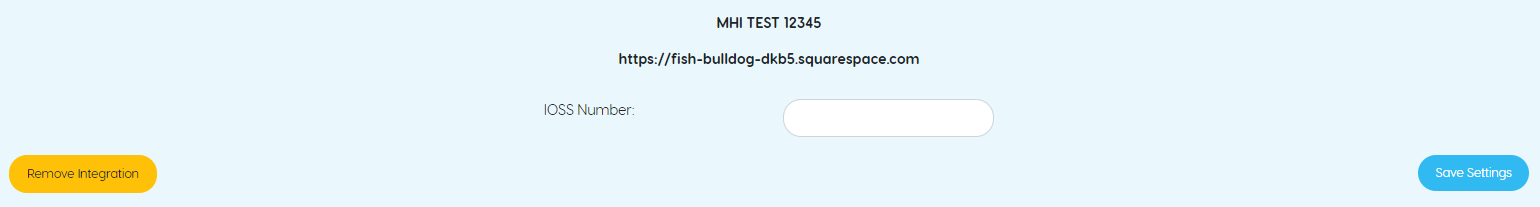 Step 5) If your Squarespace store is registered with IOSS, then you can edit your integration and enter the 12 digit code where prompted. Please ensure the IOSS number is also listed in your 'Customs Info' section in 'Settings'