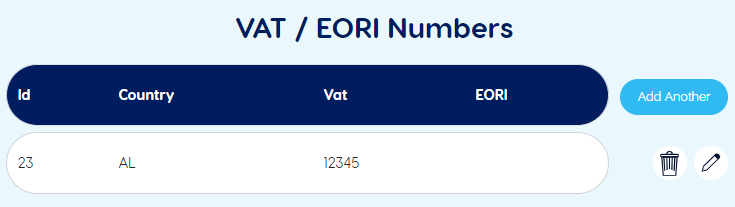 Within customs information, you can advise us of your international VAT registration numbers for each country. This is crucial for international consignments, to ensure recipients are correctly charged duties and compliance with local regulations.